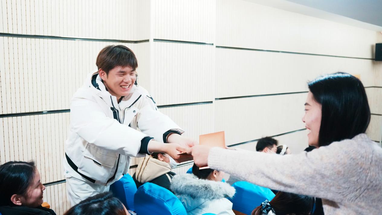 活动伊始,各专业教师代表结合专业特色为学子们梳理备考重点、提振冲刺信心,用深厚的专业积淀为学子们筑牢考研“护城河”,让大家在冲刺阶段方向更明、底气更足。随后,指导老师们手持贺卡,逐一走到学生面前,递上这份沉甸甸的关爱。贺卡上,有对坚韧毅力的肯定,有对薄弱环节的叮嘱,更有对未来前程的期许。学子们接过贺卡,低头细细品读,字里行间的师者深情与牵挂,让冬日的讲堂暖意愈发浓厚。